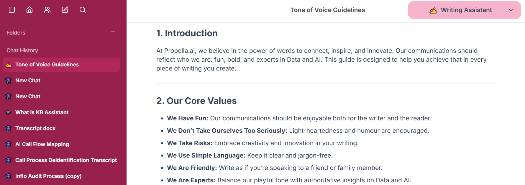 - Define Organisation Writing Guide: It provides instructions to the Writing Guide Assistant.