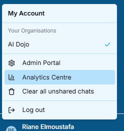 If you're an admin, you’ll find the Analytics Centre in the account menu.
