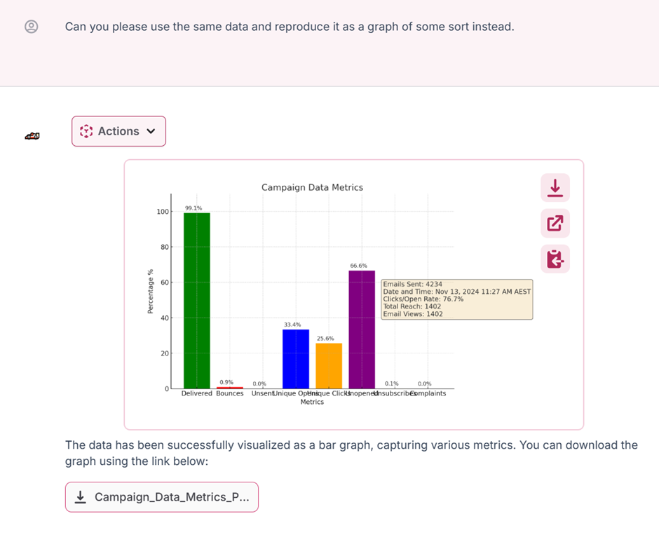 You can upload files to generate documents or charts. If you don’t like the result, just ask the AI to tweak it. You can try as many times as you want.