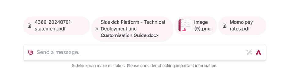 The platform accepts many file types (like Excel, PDFs, Word, images, and more). You can upload multiple files at once and it will analyse them together.