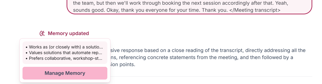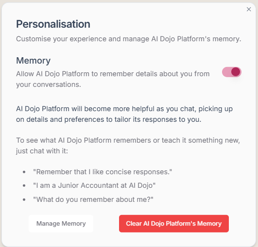 The AI Platform remembers your preferences to help it get smarter over time. You can: